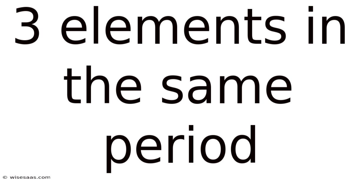 When discussing the periodic table, one of the most fundamental principles is the organization of elements based on their atomic structure. Still, this concept helps illustrate how elements within a period exhibit certain trends while also differing in their specific characteristics. Elements in the same period share a common characteristic: they all have the same number of electron shells. And a key aspect of this organization is the concept of periods, which are the horizontal rows in the table. The idea of "3 elements in the same period" refers to selecting three elements that occupy the same horizontal row in the periodic table. That's why this shared feature influences their chemical and physical properties, making it an essential topic for students and enthusiasts of chemistry. Understanding this concept not only deepens one’s grasp of the periodic table but also provides insight into how elements interact and behave in various contexts Simple as that..