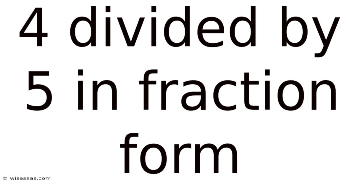 4divided by 5 in fraction form is a fundamental concept in mathematics that represents the division of two numbers as a ratio. When you divide 4 by 5, you are essentially asking how many times 5 fits into 4. This operation results in a fraction, which is a way to express parts of a whole. In this case, 4 divided by 5 is written as 4/5. But this fraction indicates that 4 is the numerator, representing the number of parts being considered, and 5 is the denominator, representing the total number of equal parts the whole is divided into. Understanding how to convert division problems into fractions is essential for solving more complex mathematical problems and for interpreting real-world scenarios where ratios and proportions are involved Took long enough..
