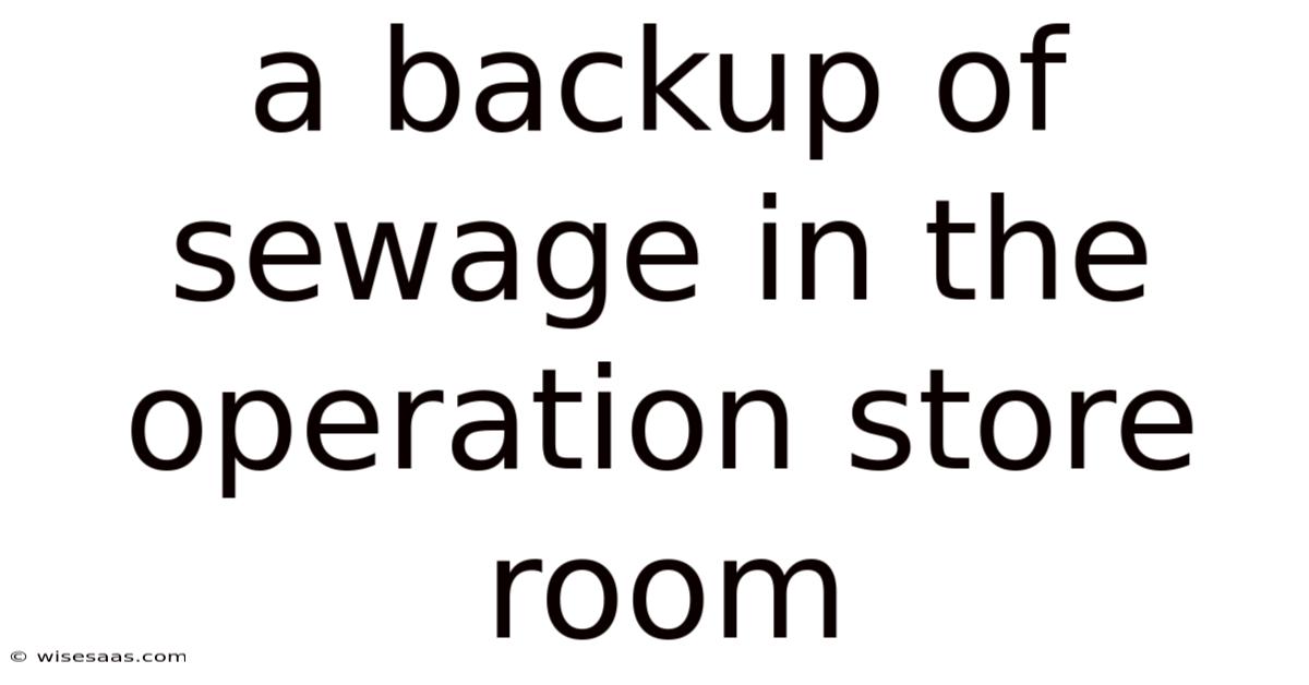 A Backup of Sewage in the Operation Store Room: Causes, Consequences, and Solutions