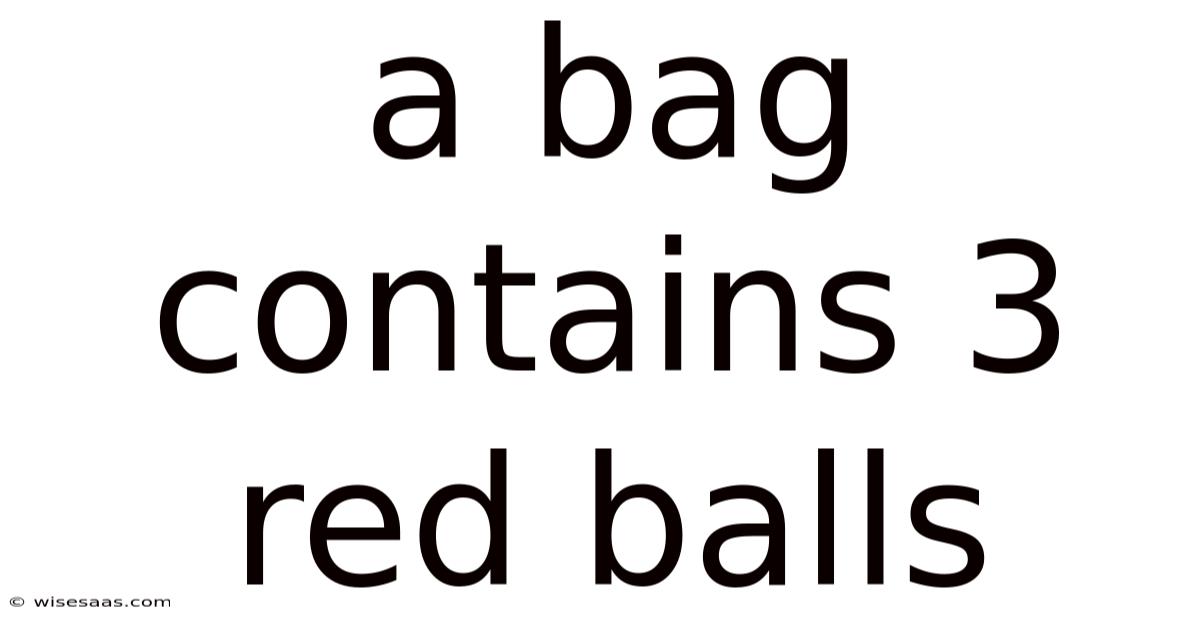 A bag contains 3 red balls, and understanding the implications of this simple composition opens the door to foundational concepts in probability, combinatorics, and everyday decision‑making. This article explores the mathematical significance of such a setup, illustrates how it serves as a building block for more complex scenarios, and provides practical examples that make the abstract ideas tangible for students, teachers, and curious readers alike. By the end, you will see how a single sentence can launch an investigation into randomness, expected value, and real‑world applications without ever leaving the comfort of a classroom or a casual conversation.