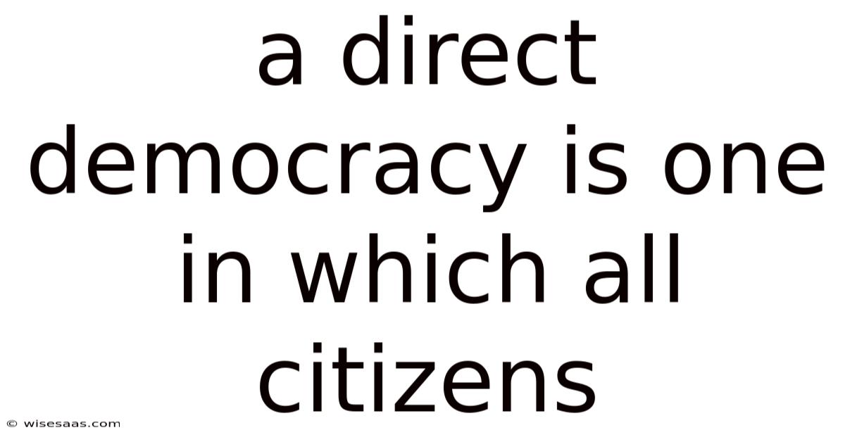 A Direct Democracy Is One In Which All Citizens