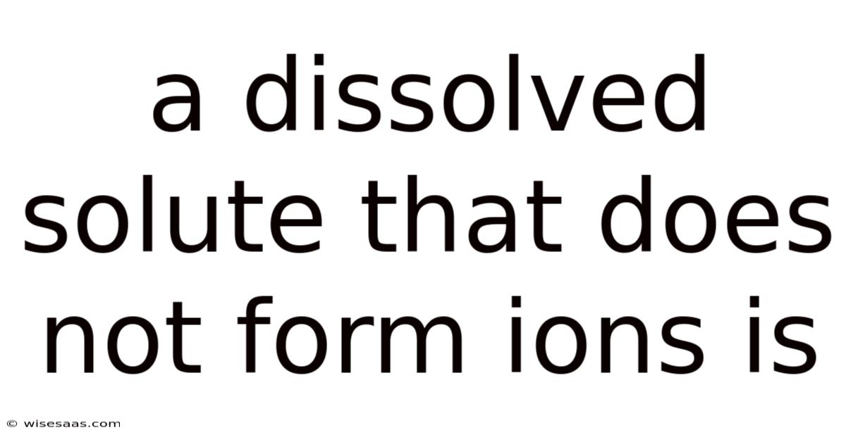 A Dissolved Solute That Does Not Form Ions: Understanding Non‑Electrolytes