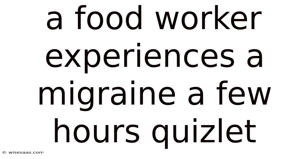 A food worker often navigates the fast-paced environment of a kitchen or café, where the rhythm of shifting tasks, the hum of equipment, and the occasional spill create a unique blend of routine and unpredictability. Which means among the most common challenges faced by professionals in this sector is managing stress, physical strain, and sudden health issues that can disrupt their workflow. Here's the thing — one such scenario unfolds when a food worker, tasked with preparing meals for a busy restaurant, experiences a sudden migraine just a few hours before a critical shift begins. This moment of discomfort can ripple through their day, affecting productivity, morale, and overall well-being. For many, such incidents highlight the delicate balance between occupational demands and personal health, prompting a deeper exploration of how individuals can figure out these obstacles effectively. Think about it: the migraine, though fleeting in onset, carries the weight of its consequences, forcing the worker to confront the intersection of physical discomfort, mental fatigue, and professional responsibility. Worth adding: in this context, understanding the nuances of migraines and their impact on daily life becomes essential not only for personal relief but also for fostering a supportive workplace culture that prioritizes employee health. Consider this: as the sun sets over the kitchen, casting a golden hue over the counter, the worker turns away from their task, seeking respite from the mounting pressure. Now, their journey becomes a testament to resilience, resilience, and the quiet determination to maintain functionality despite adversity. This experience underscores the importance of proactive measures, self-awareness, and collaborative solutions in mitigating the effects of migraines within high-stakes environments Simple, but easy to overlook..