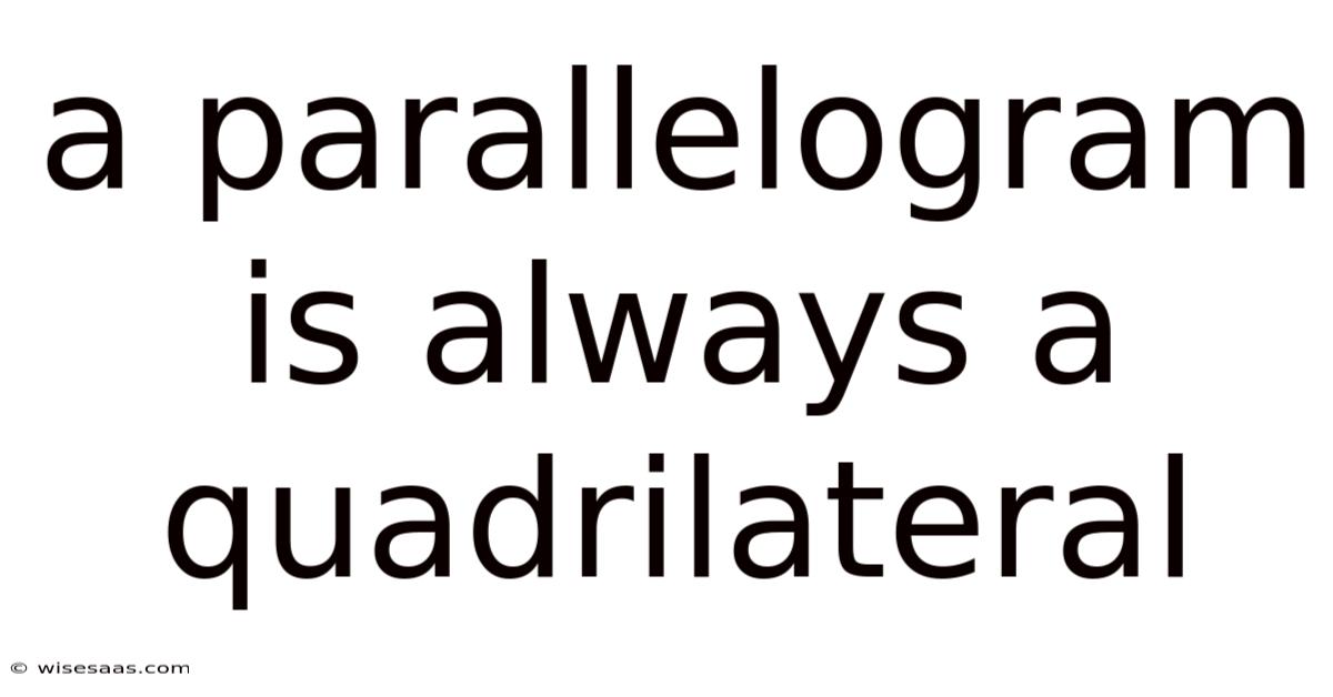 The statement that a parallelogram is always a quadrilateral comes directly from how these shapes are defined. To be classified as a parallelogram, a figure must first meet the requirements of being a polygon. Consider this: a polygon must have at least three sides, but a parallelogram goes further by requiring exactly four sides. This makes it automatically a quadrilateral before any other properties are even considered Worth knowing..