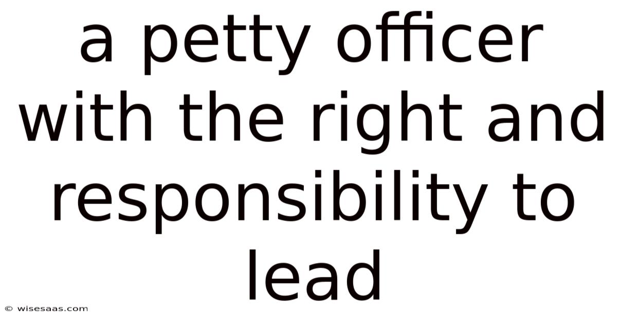 A Petty Officer is more than just a rank in naval and coast guard hierarchies; it is a position that carries both right and responsibility to lead. While junior enlisted personnel execute tasks, Petty Officers bridge the gap between officers and the crew, translating strategic directives into actionable orders and ensuring that every operation runs smoothly. Day to day, this dual role—authority to command and duty to mentor—makes the Petty Officer a cornerstone of maritime effectiveness. Understanding how this rank wields leadership, what expectations accompany it, and how aspiring Petty Officers can excel is essential for anyone interested in naval careers or military leadership studies Nothing fancy..