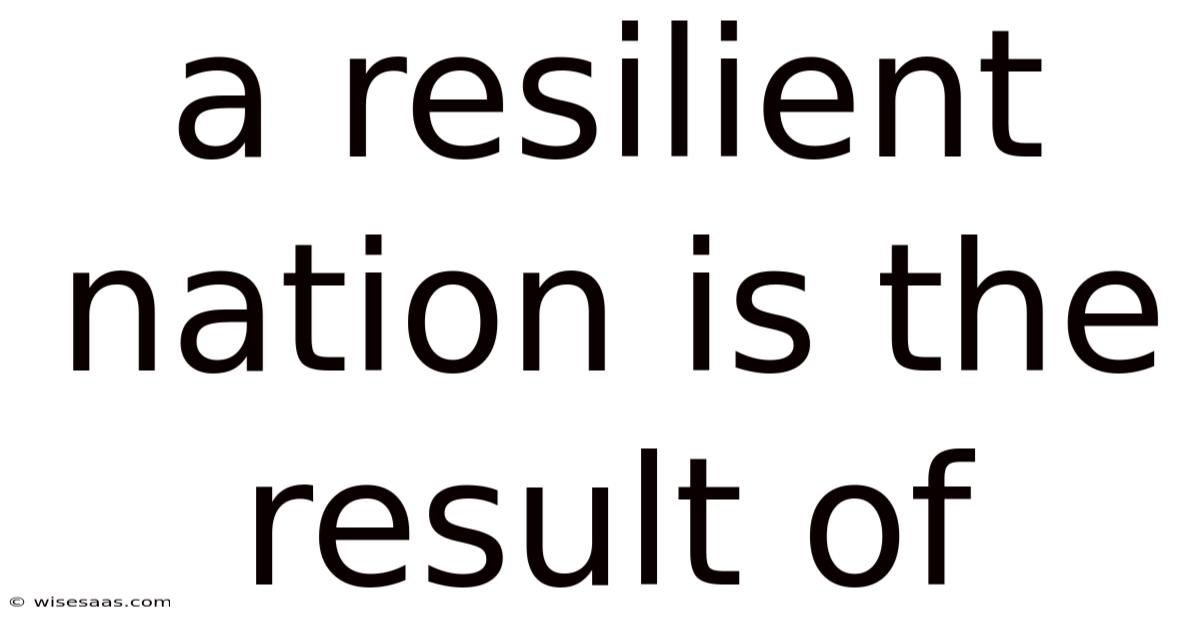 A Resilient Nation Is the Result of Strong Foundations and Collective Effort