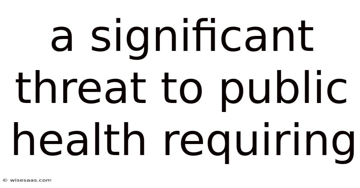 A Significant Threat to Public Health Requiring Urgent Global Action