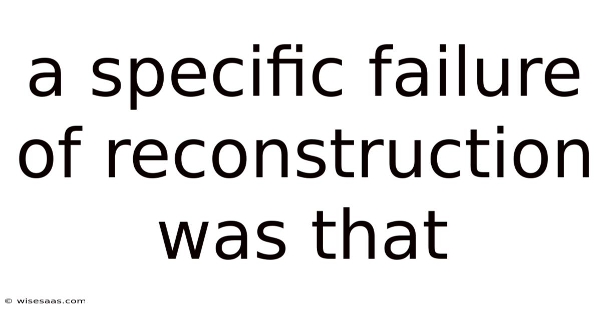 a specific failureof reconstruction was that it did not dismantle the plantation‑based economy that continued to bind former slaves to cycles of debt and exploitation.