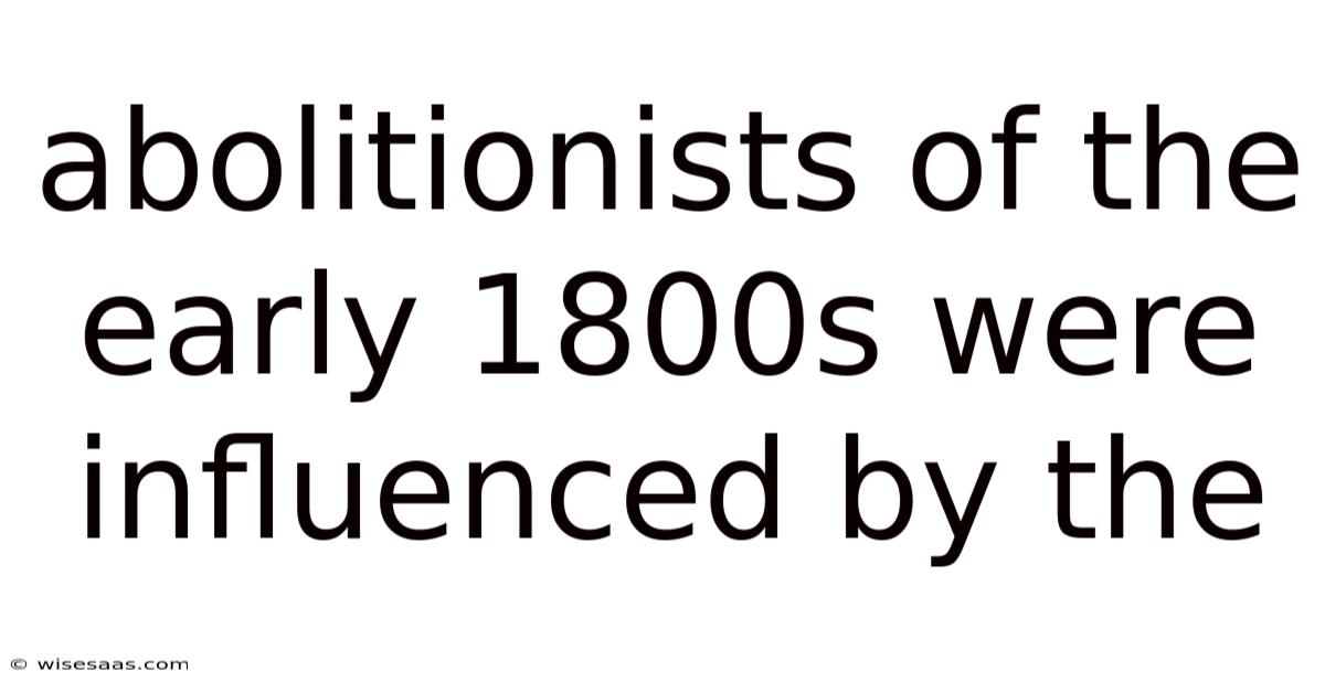 Abolitionists of the Early 1800s Were Influenced by the Enlightenment and Religious Revival