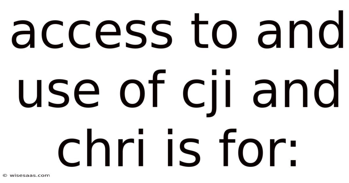 Access to and Use of CJi and CHRI: Understanding Their Role and Significance