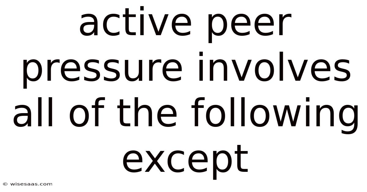 When educators and psychologists discuss social influence, the phrase active peer pressure involves all of the following except frequently appears in learning materials designed to test conceptual clarity. Understanding this distinction is essential for students, parents, and anyone navigating group dynamics in academic, professional, or social environments. Active peer pressure refers to direct, intentional social influence where peers explicitly encourage, persuade, or challenge an individual to adopt specific behaviors, attitudes, or choices. Unlike subtle or unspoken influences, it operates through clear communication, observable expectations, and immediate social feedback. This breakdown explores exactly what active peer pressure encompasses, what it deliberately excludes, and how you can recognize and figure out it with confidence and emotional resilience Surprisingly effective..