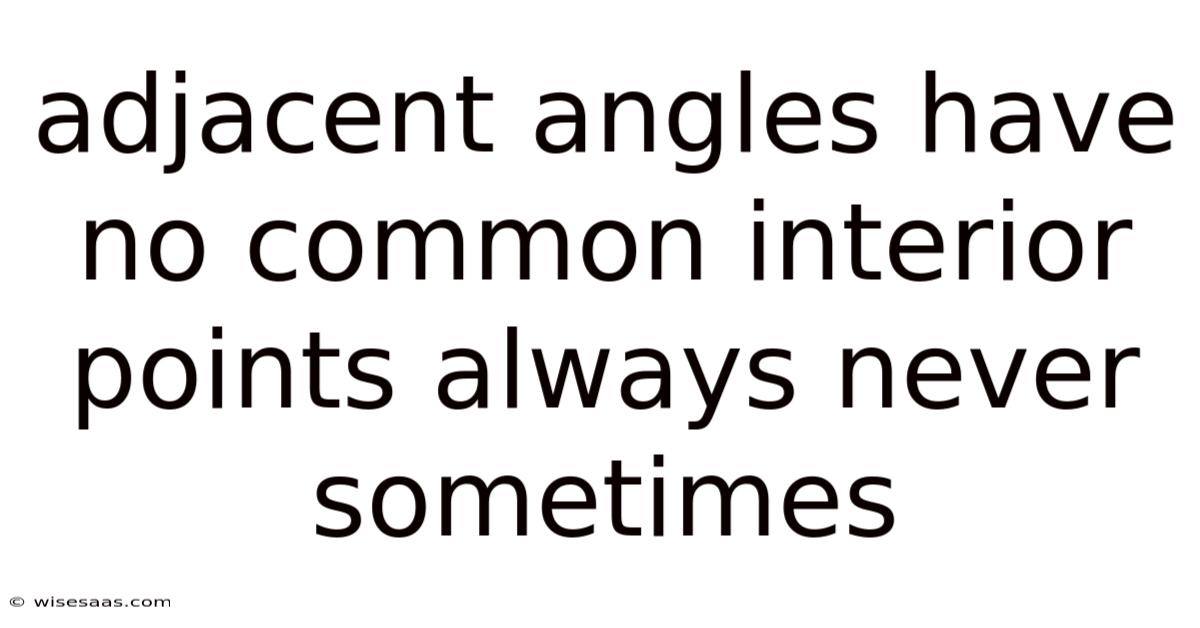 Adjacent angles are a fundamental concept in geometry, often encountered in both basic and advanced mathematical studies. Because of that, these angles are formed when two angles share a common vertex and a common side, but their other sides do not overlap. Now, the question of whether adjacent angles have common interior points is a critical one, as it touches on the very definition of what constitutes an angle and how they interact in geometric figures. This article explores the nature of adjacent angles, their properties, and the definitive answer to whether they can have common interior points—always, never, or sometimes.