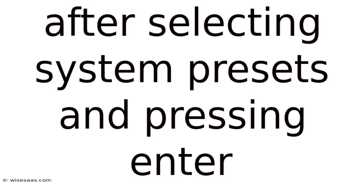 Understanding the process of selecting system presets and pressing enter is a crucial step for anyone looking to optimize their device settings for better performance and user experience. This leads to whether you are using a smartphone, tablet, or computer, grasping how these presets work can significantly enhance your interaction with technology. This article will get into the importance of system presets, how they function, and the benefits of mastering the act of pressing enter in this context Small thing, real impact..