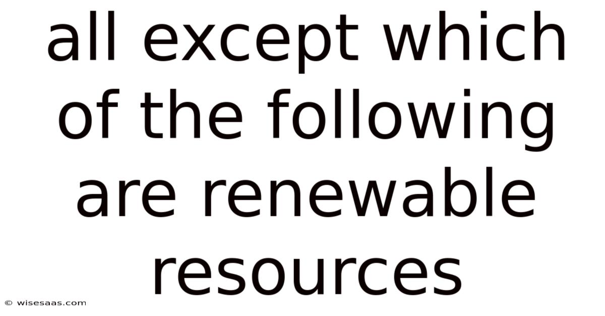 The phrase "all except which of the following are renewable resources" is a classic format for multiple-choice questions in science, geography, and environmental studies. And it tests a fundamental understanding of how we classify Earth's natural assets. But at its core, this question challenges you to identify the odd one out—the resource that does not belong in the renewable category. On the flip side, to master this, you must move beyond simple memorization and grasp the defining principles that separate resources we can replenish from those we are depleting forever. This article will provide a comprehensive framework for analyzing any such list, ensuring you can confidently spot the non-renewable resource, understand why it doesn't belong, and appreciate the critical importance of this distinction for our planet's future Still holds up..
