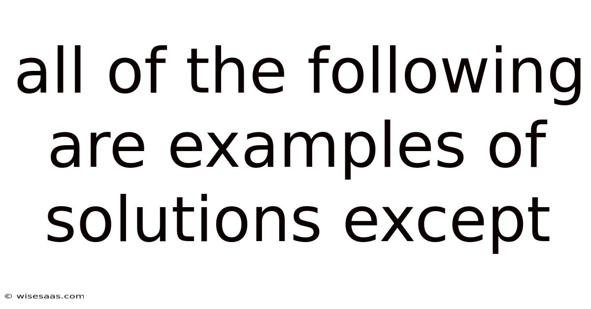 In the world of chemistry, the term solution is often used to describe a mixture, but not every mixture qualifies as a solution. Practically speaking, when students or science enthusiasts encounter questions such as "all of the following are examples of solutions except," they are being tested on their ability to distinguish between different types of mixtures based on particle size, homogeneity, and stability. Understanding the fundamental differences between solutions, colloids, and suspensions is essential for mastering chemistry and grasping how matter behaves in our daily lives Practical, not theoretical..