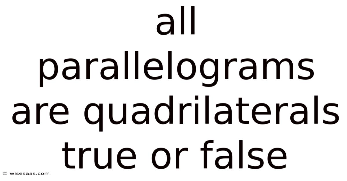All in all, the statement that all parallelograms are quadrilaterals is not only accurate but also essential in the study of geometry. Even so, by understanding this relationship, we gain insight into the structure and properties of shapes that shape our world. This knowledge not only enhances academic performance but also empowers individuals to apply geometric principles in various aspects of life It's one of those things that adds up..