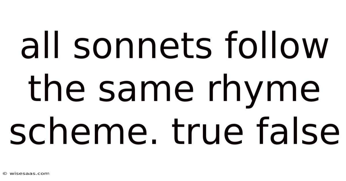 Sonnets are often celebrated for their musical structure, but the notion that every sonnet follows the same rhyme scheme is a myth. Now, in reality, the poetic form has evolved across centuries and cultures, giving rise to several distinct patterns of rhyme. Understanding these variations not only clarifies the claim but also equips writers and readers with the tools to appreciate the sonnet’s flexibility. This article explores the truth behind the statement, dissects the most common rhyme schemes, and explains why the misconception persists And that's really what it comes down to..