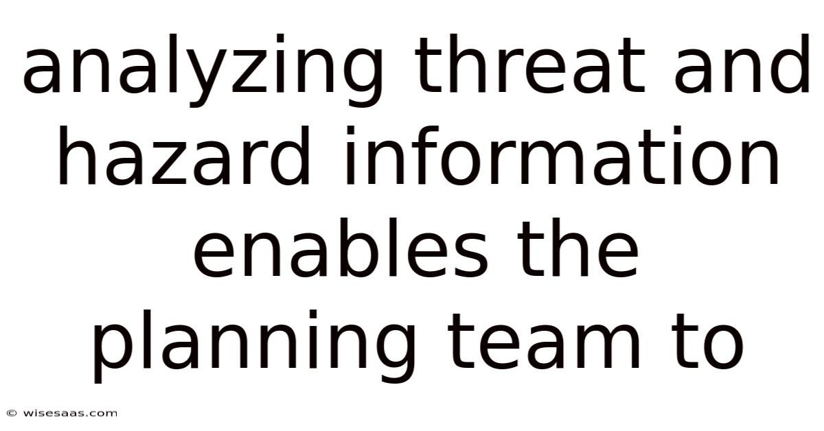 Analyzing Threat And Hazard Information Enables The Planning Team To