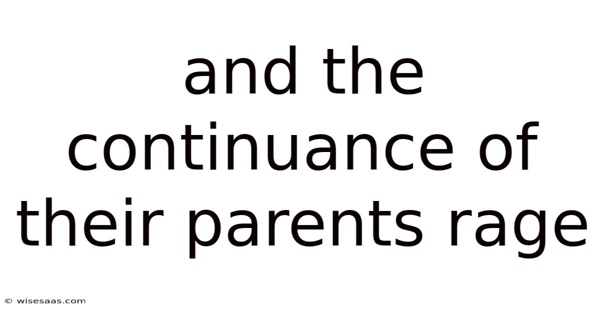 Can the continuance of their parents rage be completely eliminated?