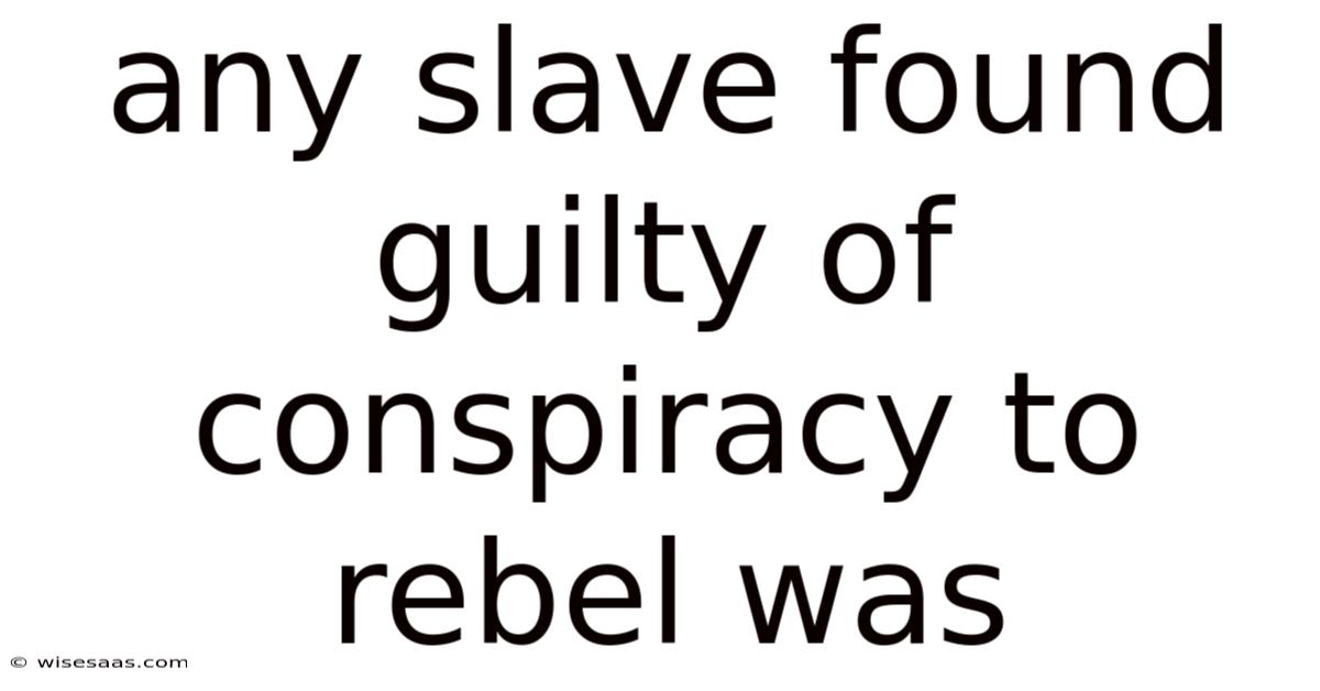 Any Slave Found Guilty Of Conspiracy To Rebel Was