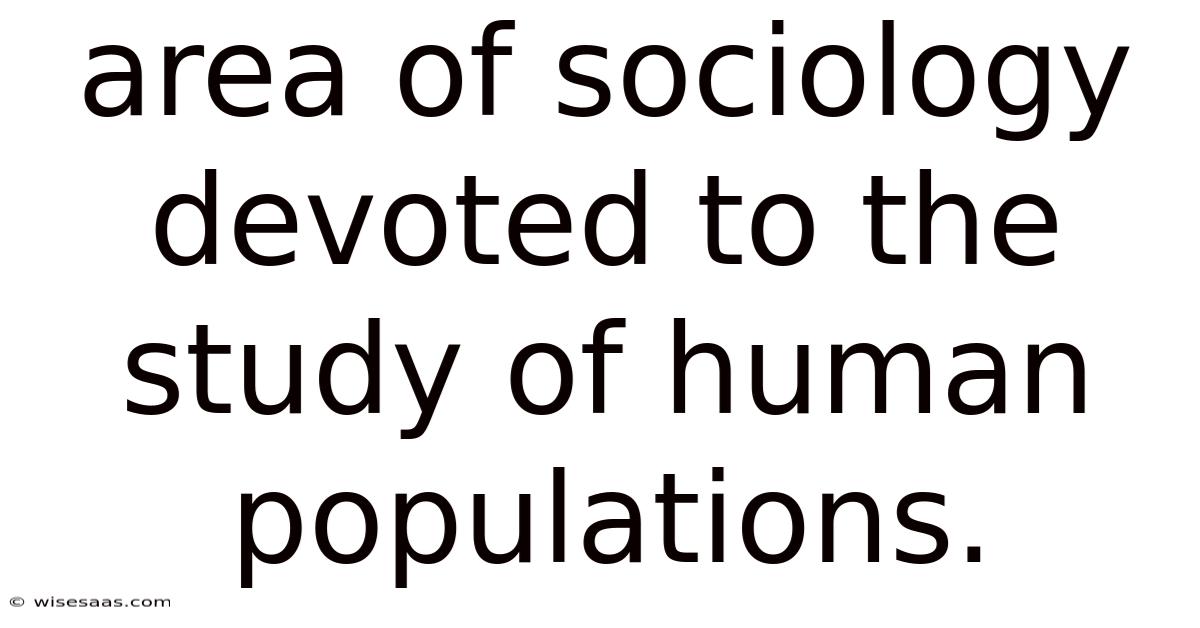 Area Of Sociology Devoted To The Study Of Human Populations.