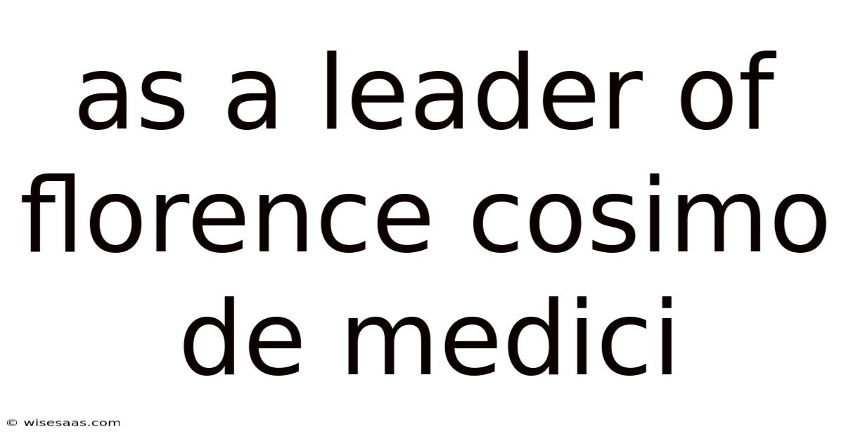 As a Leader of Florence, Cosimo de' Medici: A Visionary Architect of the Renaissance