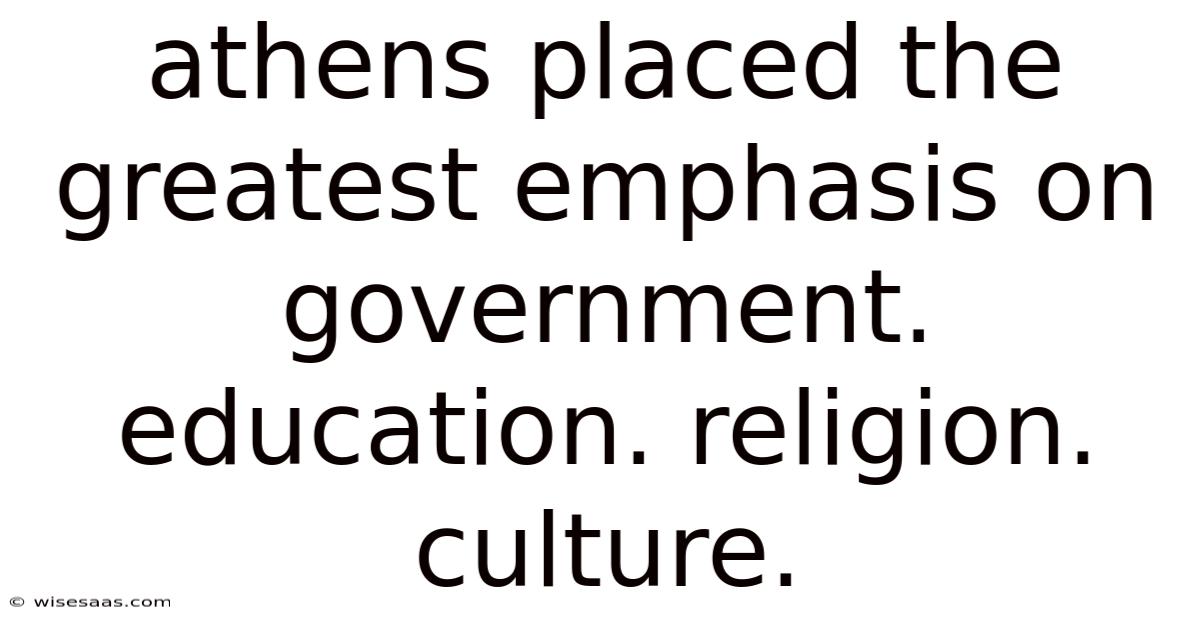 Athens Placed The Greatest Emphasis On Government. Education. Religion. Culture.
