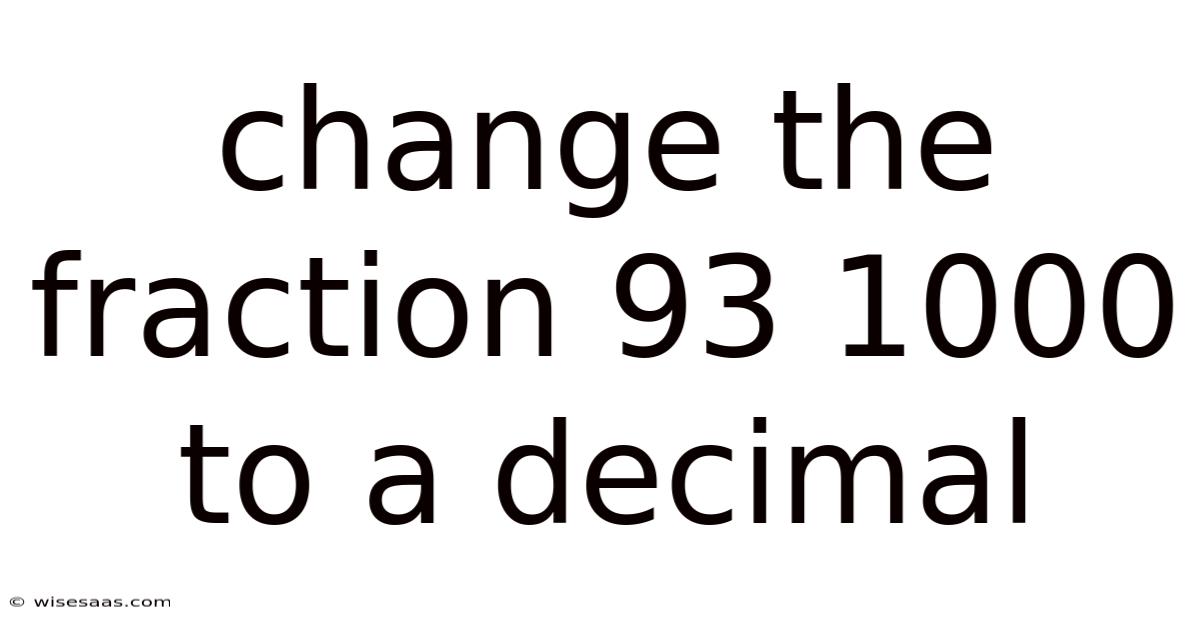 To begin, let's recall that a fraction represents a part of a whole. In this case, 93/1000 means 93 parts out of 1000 equal parts. To convert this fraction to a decimal, we need to divide the numerator (93) by the denominator (1000).