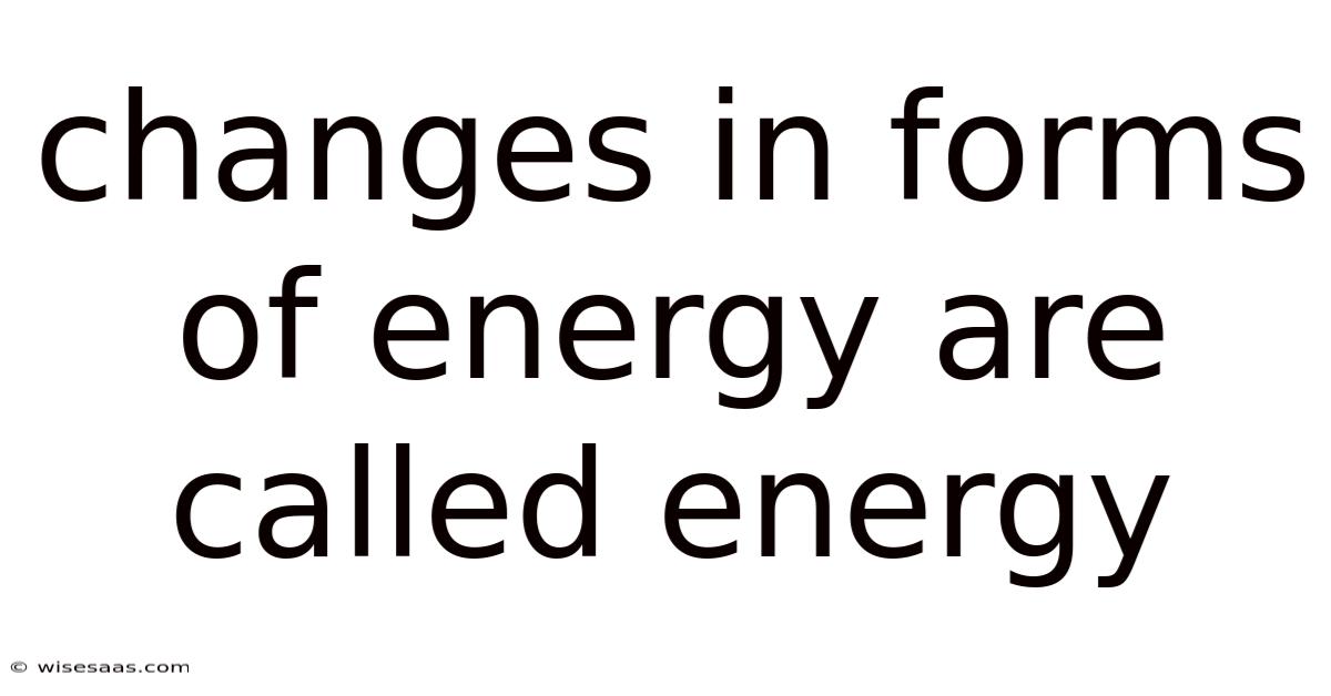 Changes in forms of energy are called energy transformation, which occurs when energy shifts from one type to another. This process is governed by the Law of Conservation of Energy, which states that energy cannot be created or destroyed—only converted. Here's one way to look at it: when you turn on a light bulb, electrical energy transforms into thermal and radiant energy.