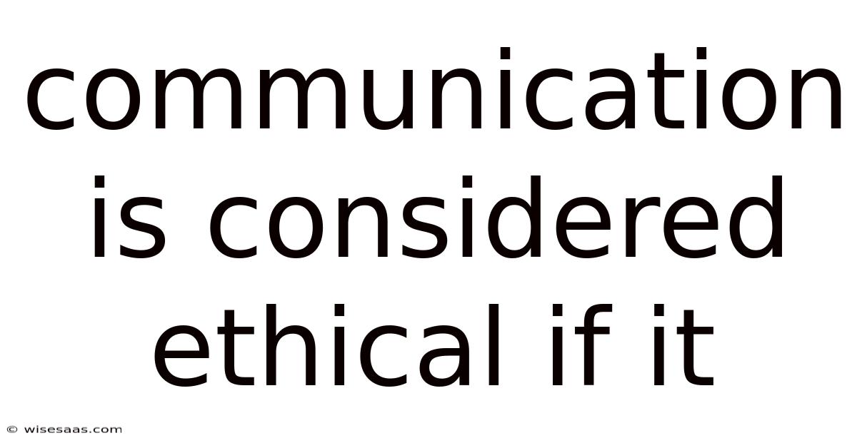 Communication Is Considered Ethical If It