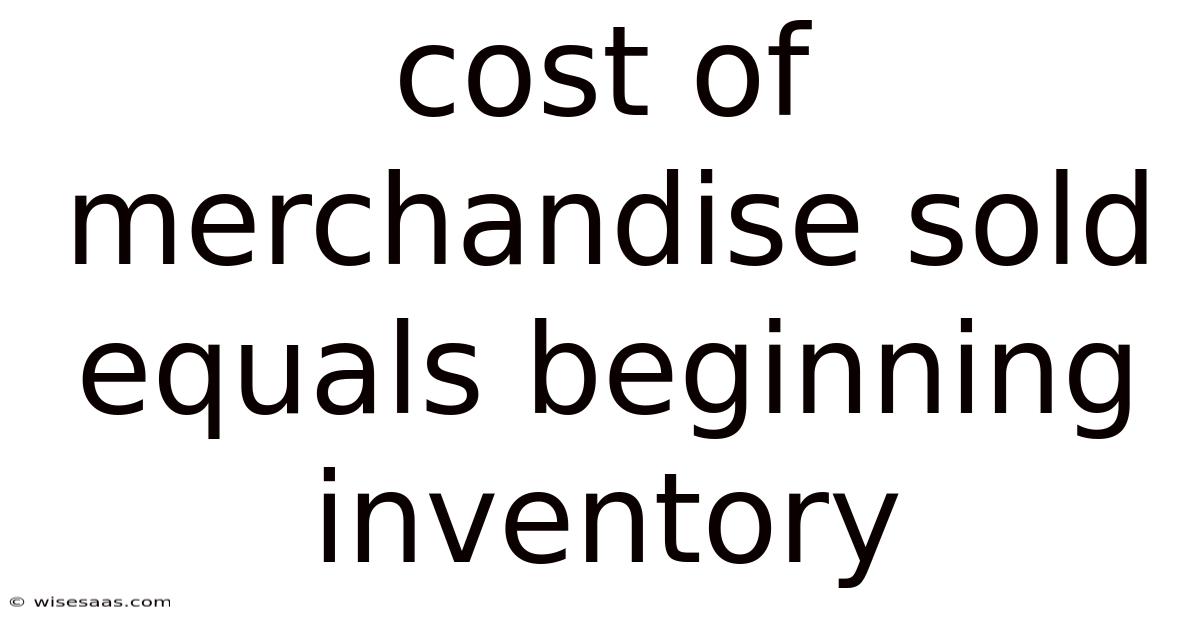The statement "cost of merchandise sold equals beginning inventory" may seem counterintuitive at first glance, but it is a valid accounting scenario that can occur under specific conditions. This situation arises when a business sells all of its beginning inventory during an accounting period without making any additional purchases. In such cases, the cost of goods sold (COGS) directly matches the value of the beginning inventory. That's why understanding this concept is crucial for accurate financial reporting, inventory management, and business analysis. This article will explore the conditions under which COGS equals beginning inventory, the accounting principles involved, and the practical implications for businesses.