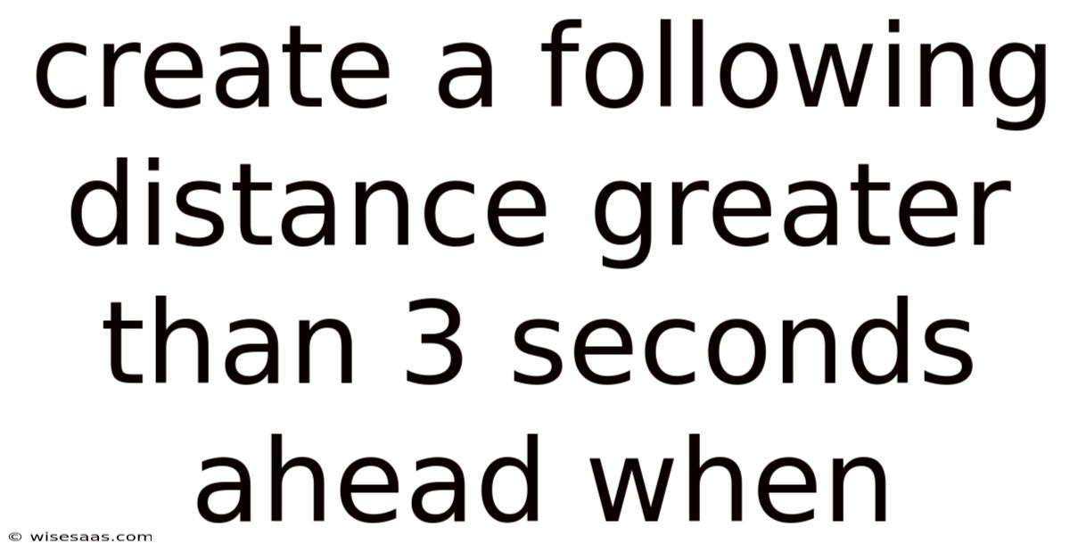 Create A Following Distance Greater Than 3 Seconds Ahead When