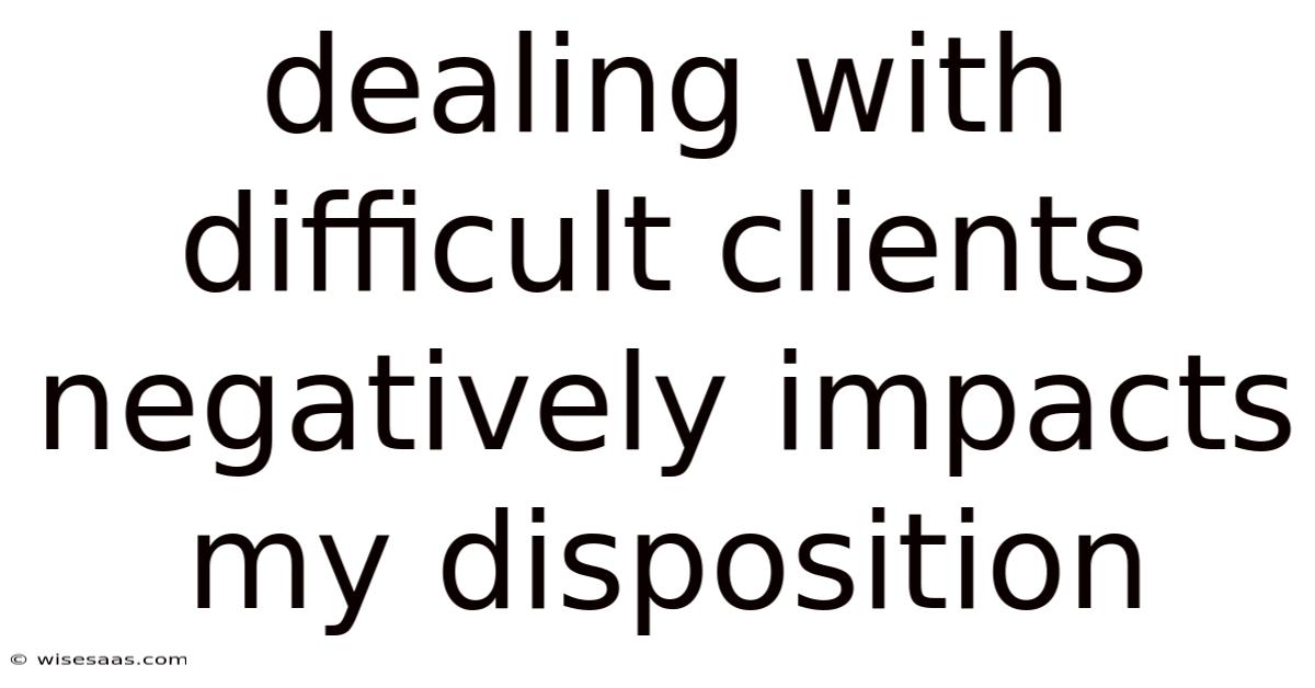 Difficult clients are an inevitable part of many professional and personal interactions, yet their presence often carries an emotional weight that few anticipate. Whether in customer service, sales, or freelance work, encountering clients who are dismissive, confrontational, or unreasonable can erode one’s sense of calm, confidence, and overall well-being. Here's the thing — the phrase “dealing with difficult clients negatively impacts my disposition” encapsulates a growing concern among professionals who struggle to maintain emotional equilibrium in the face of adversity. This article explores the psychological and practical reasons behind this impact, offering insights into why such interactions matter and how they shape our mindset.