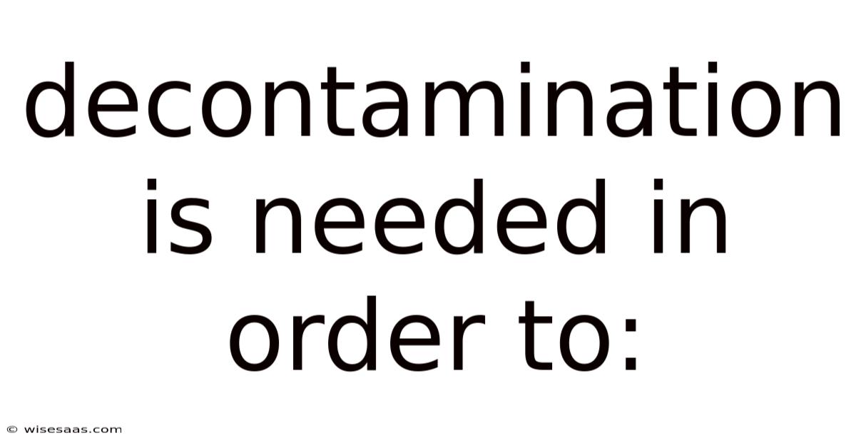 Decontamination Is Needed In Order To: