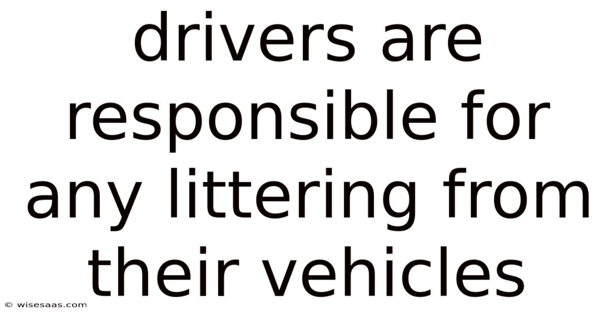 The phrase “drivers are responsible for any littering from their vehicles” carries more weight than a mere legal reminder—it reflects a collective commitment to cleaner roads, healthier wildlife, and a more sustainable future. By adopting simple habits—carrying a waste kit, checking for loose items, and encouraging passengers—you can dramatically reduce roadside litter. Practically speaking, remember, every piece of trash you keep in your vehicle becomes a step toward a cleaner planet. Embrace the responsibility, and let your driving routine become a model of environmental stewardship Simple as that..