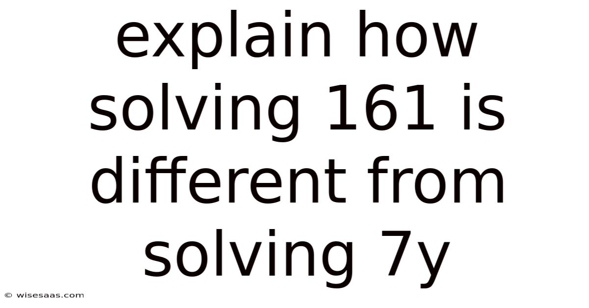 - Q: Can I solve 7y the same way I solve 161? A: While the arithmetic calculation (161 ÷ 7) is identical, the context and purpose are different. Solving 161 finds a number. Solving 7y finds the value of the variable y. The algebraic process of isolating the variable is what makes solving 7y distinct.