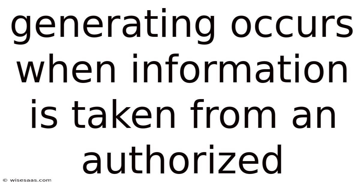 Generating occurs when information is taken from an authorized source. When we draw upon data, insights, or concepts from a trusted and verified origin, we build upon existing foundations to create something new, whether it's a novel scientific theory, a unique piece of art, a strategic business plan, or a practical solution to a real-world challenge. In real terms, this process is fundamental to knowledge creation, innovation, and problem-solving across countless fields. This article digs into the mechanics, importance, and responsible application of this essential creative act.