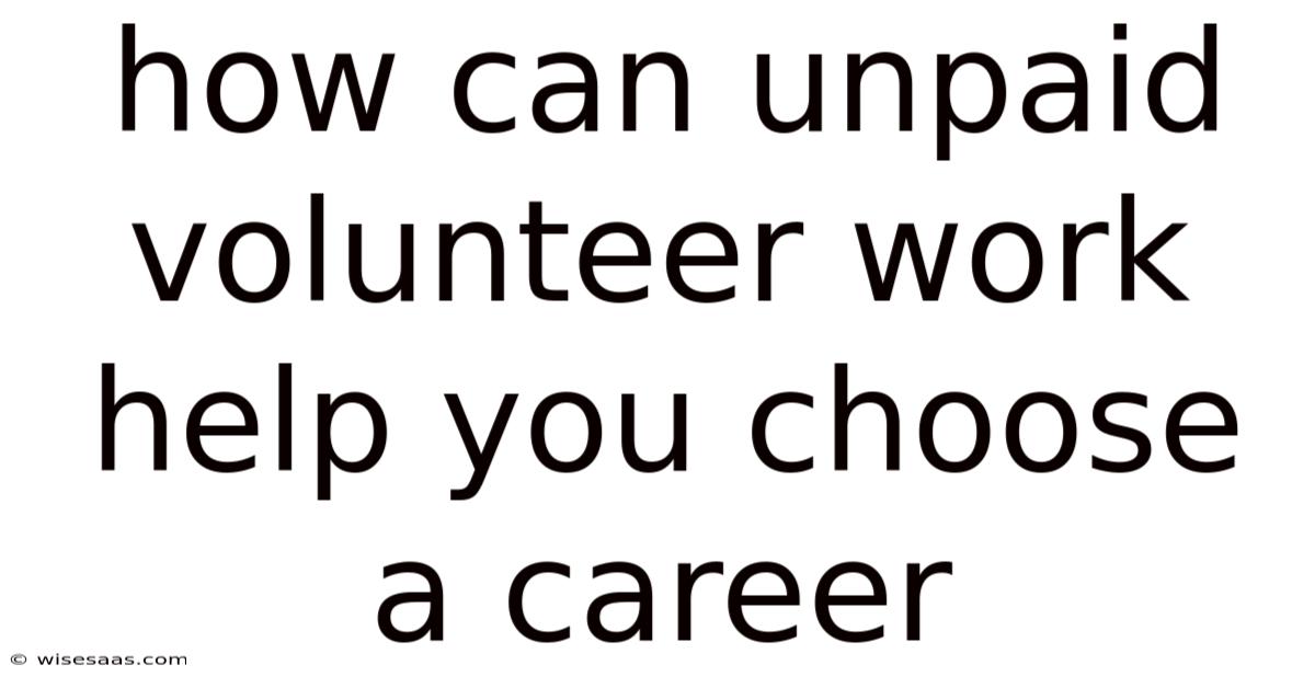 How Can Unpaid Volunteer Work Help You Choose A Career