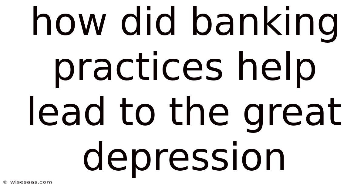 How Did Banking Practices Help Lead To The Great Depression