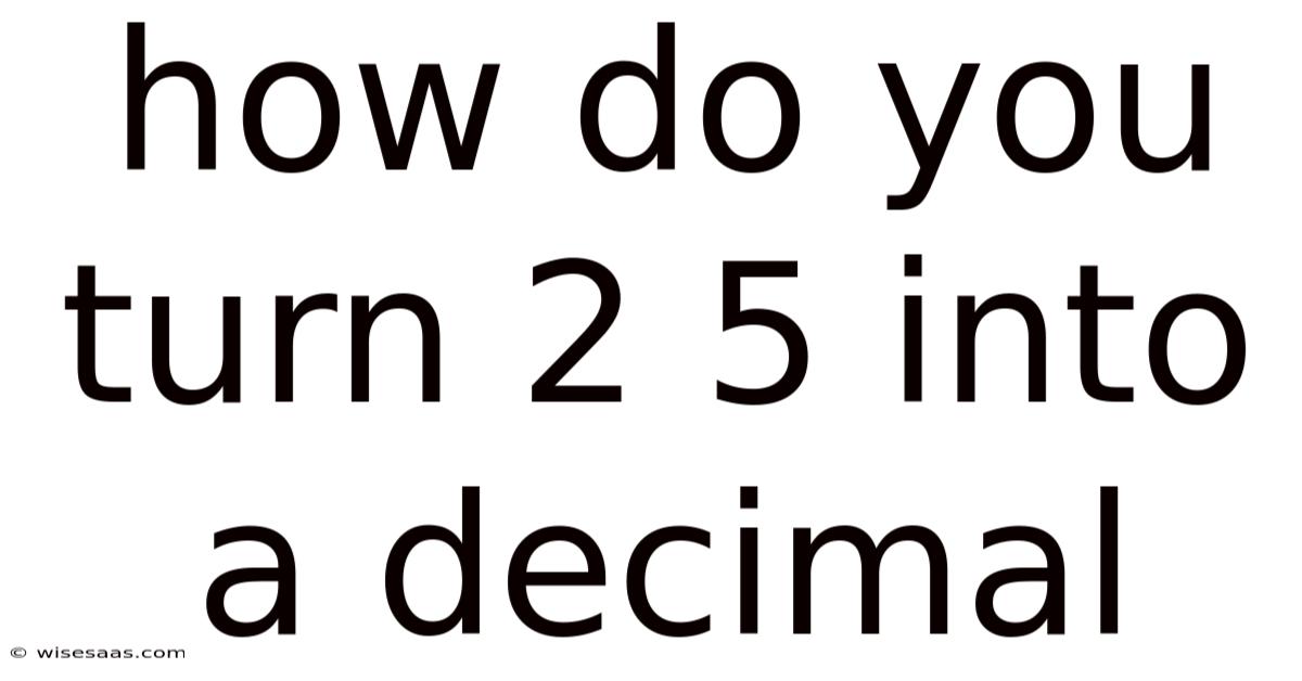 Converting mixed numbers to decimals is a fundamental math skill that often confuses beginners. When asked how do you turn 2 5 into a decimal, the key lies in understanding what "2 5" represents. Even so, if "2 5" were written as "25," it would simply be the whole number 25. In most contexts, "2 5" is interpreted as a mixed number, meaning 2 and 5/10. This is because the space between the numbers typically denotes a fractional part. For this article, we’ll assume "2 5" refers to the mixed number 2 5/10, which is the most common interpretation in mathematical problems.