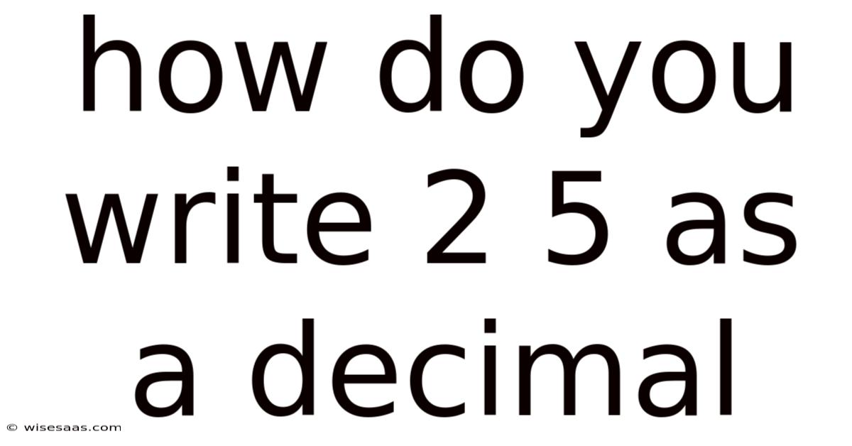 Let’s start by exploring the structure of 2.5. Practically speaking, the decimal point separates the whole number part from the fractional part. In practice, 5** to another decimal, you can think of it as adding 2 and 0. This separation is crucial because it helps in performing operations like addition, subtraction, multiplication, and division. On top of that, this number is equal to 2 plus 0. In real terms, 5 together. So 5. To give you an idea, when you add **2.This process becomes easier when you understand the relationship between decimals and fractions No workaround needed..