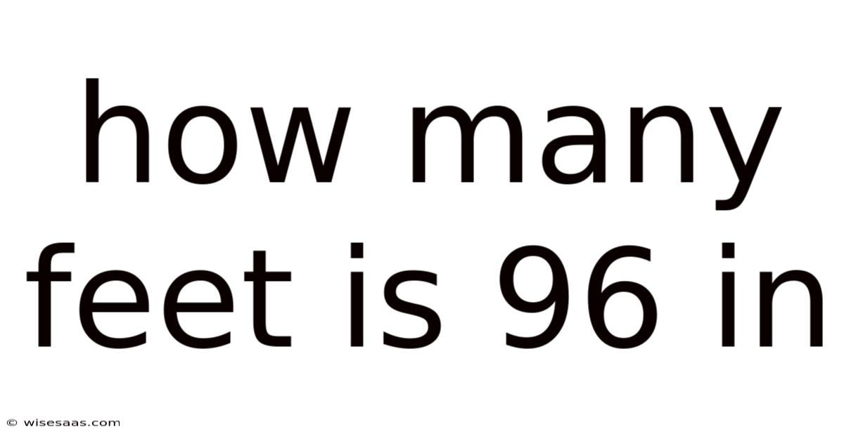 Answer: 96 inches is equal to 8 feet. This is obtained by dividing 96 by 12.