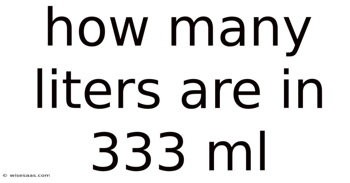 The simple answerto the question "how many liters are in 333 ml?Consider this: " is 0. 333 liters. This conversion relies on a fundamental relationship within the metric system: 1 liter (L) is exactly equal to 1000 milliliters (ml). Because of this, to convert milliliters to liters, you divide the number of milliliters by 1000 Simple, but easy to overlook..