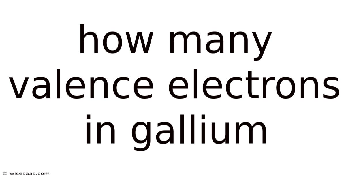 The outermost shell (n=4) contains the 4s and 4p orbitals. Adding these electrons gives 2 (from 4s) + 1 (from 4p) = 3 valence electrons. Thus, gallium has 3 valence electrons Simple as that..