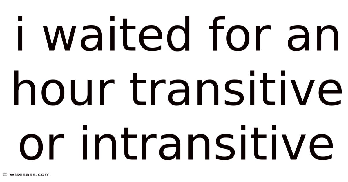 The sentence "I waited for an hour" is a common example used to explore the nuances of verb usage in English, particularly the distinction between transitive and intransitive verbs. Still, at first glance, the phrase might seem straightforward, but a closer examination reveals important grammatical principles that shape how we interpret and construct sentences. The core question here is whether the verb "waited" in this context is transitive or intransitive. To answer this, we must first understand the definitions of these terms and how they apply to the sentence in question Small thing, real impact. No workaround needed..