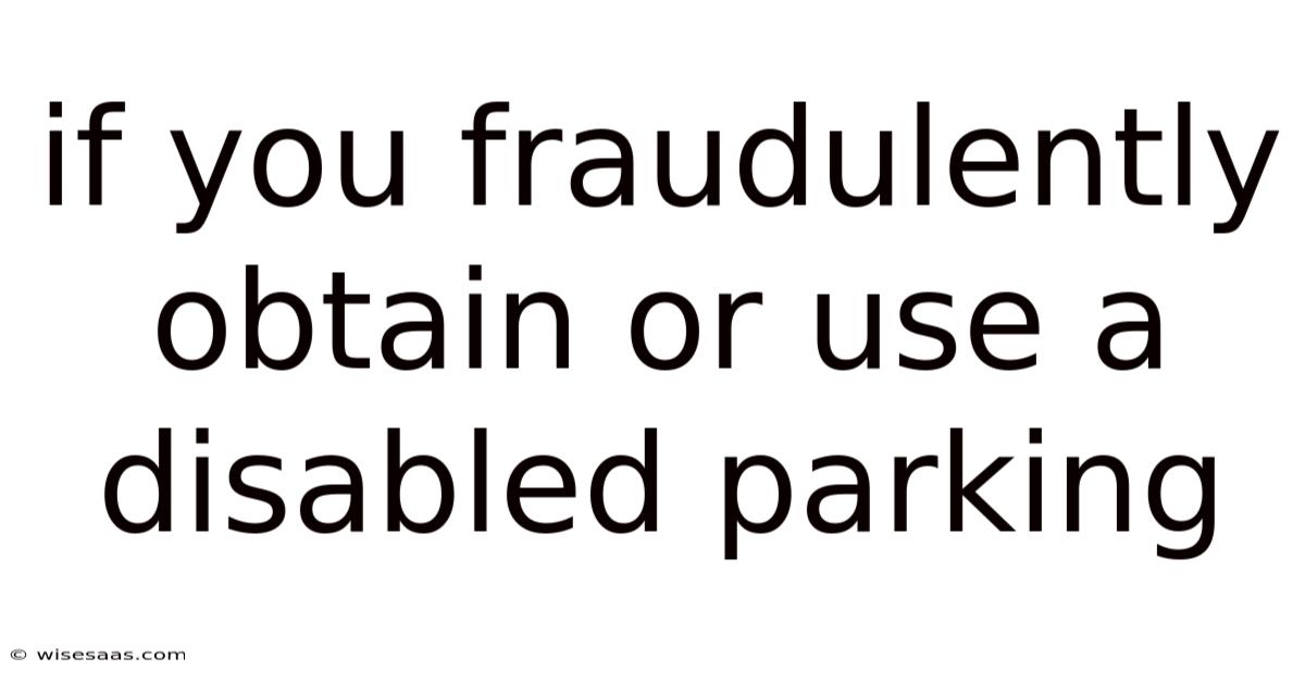 If You Fraudulently Obtain Or Use A Disabled Parking
