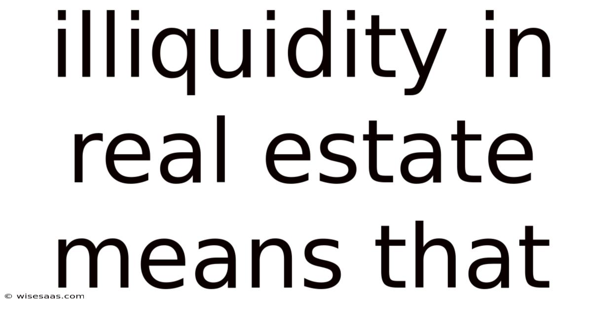 Illiquidity in Real Estate Means That Investors Face Challenges When Converting Property Assets into Cash Quickly
