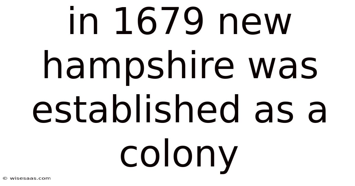 In 1679 New Hampshire Was Established As A Colony