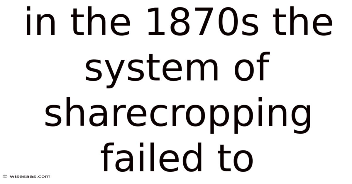 In the 1870s the system of sharecropping failed to secure economic stability for Southern farmers