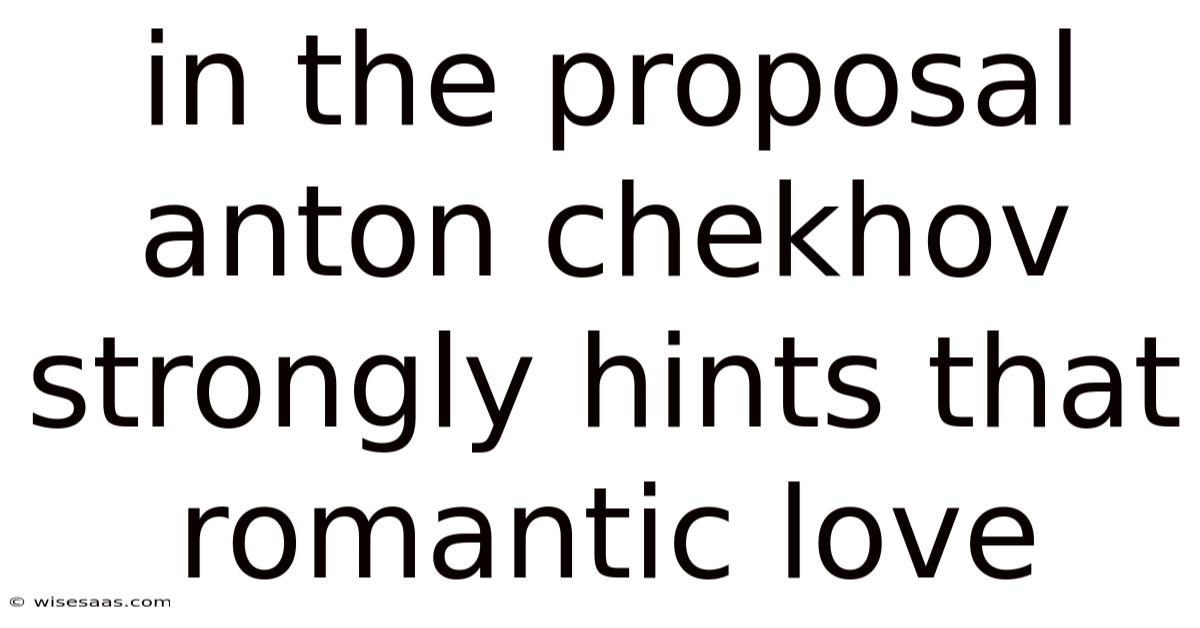 The Subtle Hints of Romantic Love in Anton Chekhov's "The Proposal"